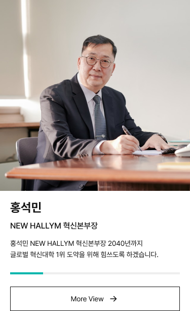 홍석민 New Hallym 혁신본부장 2040년까지 글로벌 혁신대학 1위 도약을 위해 힘쓰도록 하겠습니다.