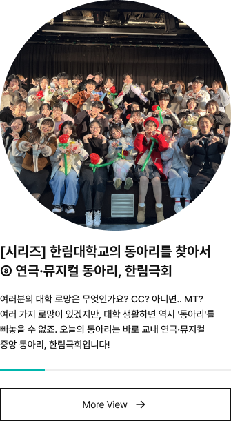 여러분의 대학 로망은 무엇인가요? CC? 아니면.. MT? 여러 가지 로망이 있겠지만, 대학 생활하면 역시 '동아리'를 빼놓을 수 없죠. 오늘의 동아리는 바로 교내 연극·뮤지컬 중앙 동아리, 한림극회입니다!